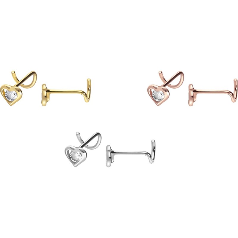 PIERCINGLINE 750 Gold Nose Piercing Spiral | 18 Carat | Heart with Crystal | Piercing Nose Stud | Choice of Colours, Yellow Gold, Cubic Zirconia