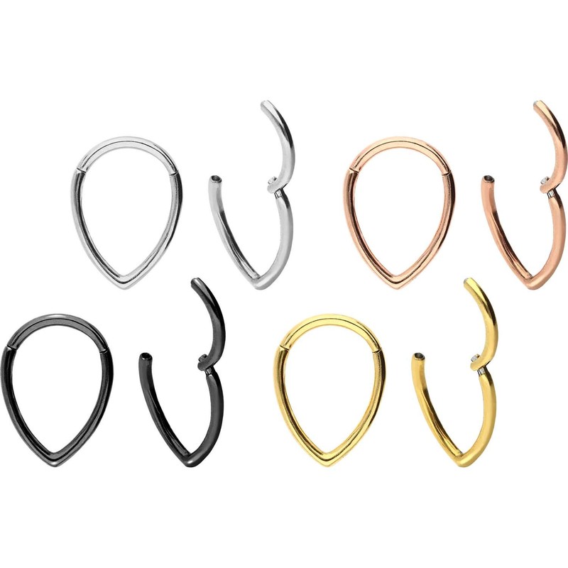 Dieser Clicker ist ein absoluter Blickfang! Gefertigt aus hochwertigem Chirurgenstahl 316L und wahlweise mit einer wunderschönen PVD-Beschichtung versehen bietet er eine sehr gute Qualität und Beschaffenheit. Die Tropfen-Form des Clickers garantiert neidische Blicke. Die Clickerpiercings sind neben dem Einsatz im Septum auch für viele andere Körperregionen (z.B. das Ohr) geeignet.