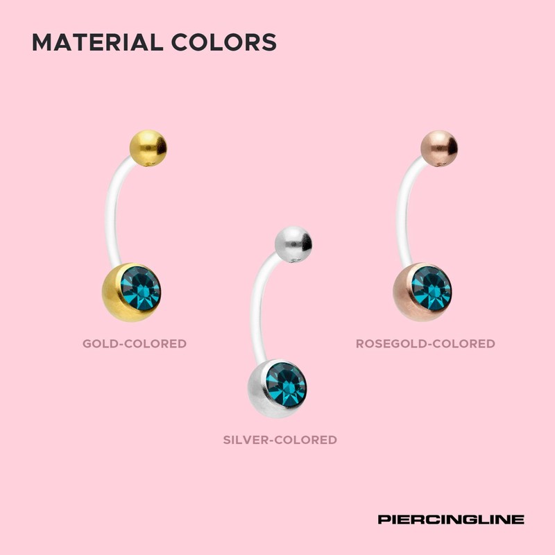 PIERCINGLINE flexible belly button piercing made of Teflon - for pregnancy - can be shortened individually - in gold colours/crystal clear