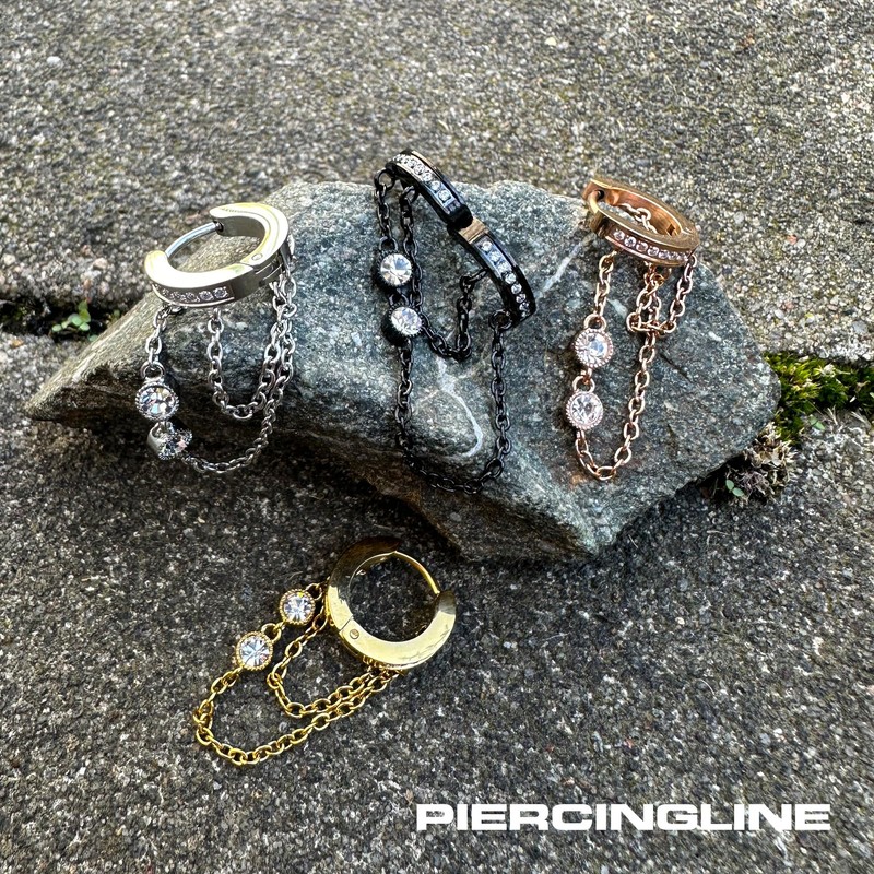 PIERCINGLINE Segment Ear Clicker with Chains and Crystals Surgical Steel Piercing for Ear or Helix in 4 Stylish Colours, Stainless Steel