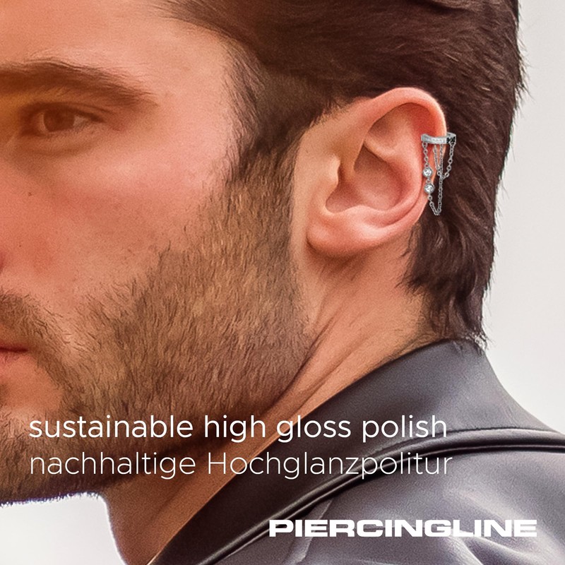 Our piercing is not only a stylish piece of jewellery, but also extremely versatile. Wear it as an ear or helix piercing and attract everyone's attention. For the best effect, we recommend wearing it in the right ear so that the sparkling stones are facing forward.