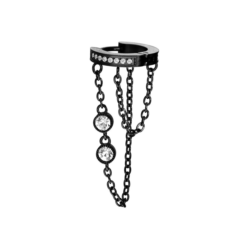 - Box contents: segment ear clicker with chains and crystals, colour: black, size: 9 mm inner diameter, 1 mm bar thickness (inserted rod) | design thickness: 2 mm