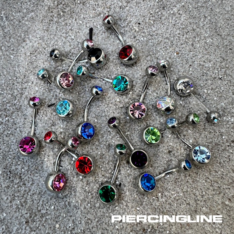 - Box contents: 1 belly button piercing in rose gold/crystal colour: Crystal clear. Size: 10 mm bar length, 1.6 mm bar thickness, ball sizes 5 and 8 mm.
