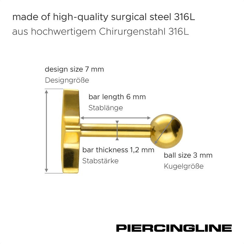 PIERCINGLINE Surgical Steel Ear Piercing | Star | Piercing Jewellery Ear Stud Helix | Choice of Colours, Stainless Steel, Without Stone