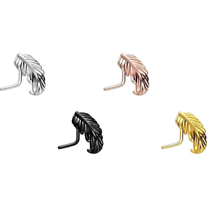 PIERCINGLINE Surgical Steel Nose Stud Feather Choice of Colours, Stainless Steel, Without Stone