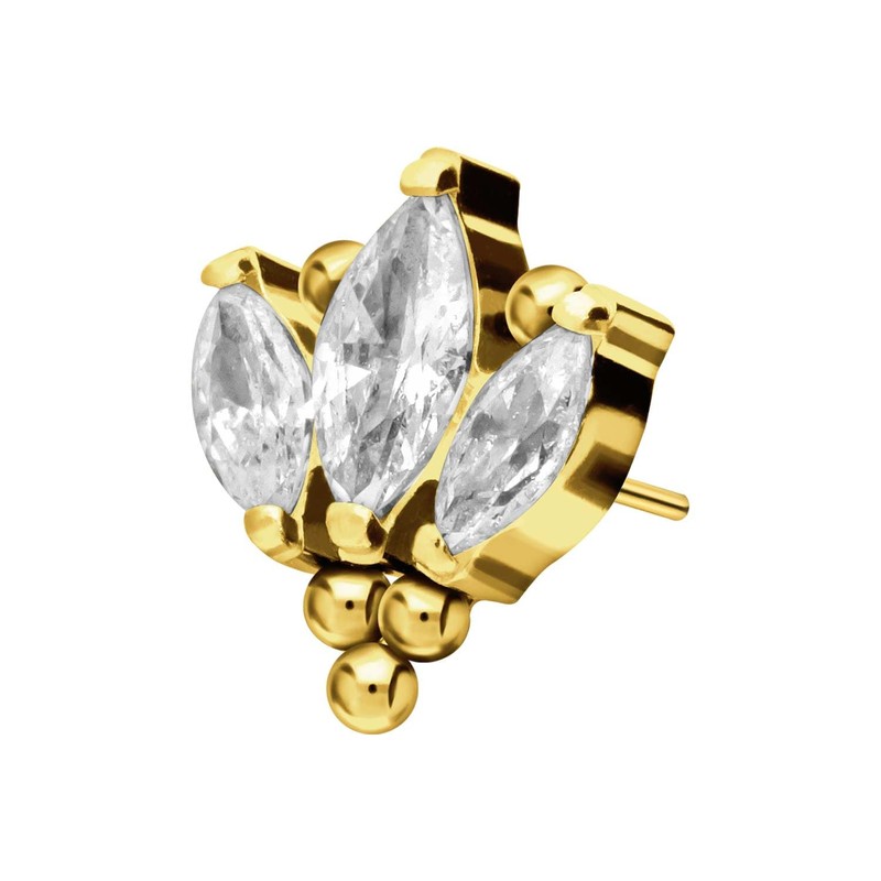 - Box contents: 1 titanium attachment without labret plug (push fit without thread), gold colour, design size: 5.5 x 7 mm