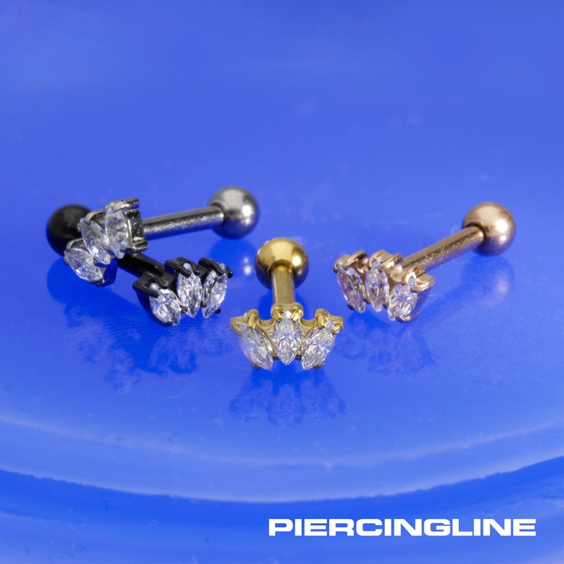 PIERCINGLINE Titanium Ear Piercing with Internal Thread | 3 Crystal Drops | P...