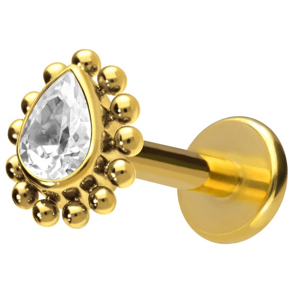 PIERCINGLINE Titanium Labret with Internal Thread | Crystal Drops | Piercing Lip Nose Ear Helix | Choice of Colours and Sizes, Titanium