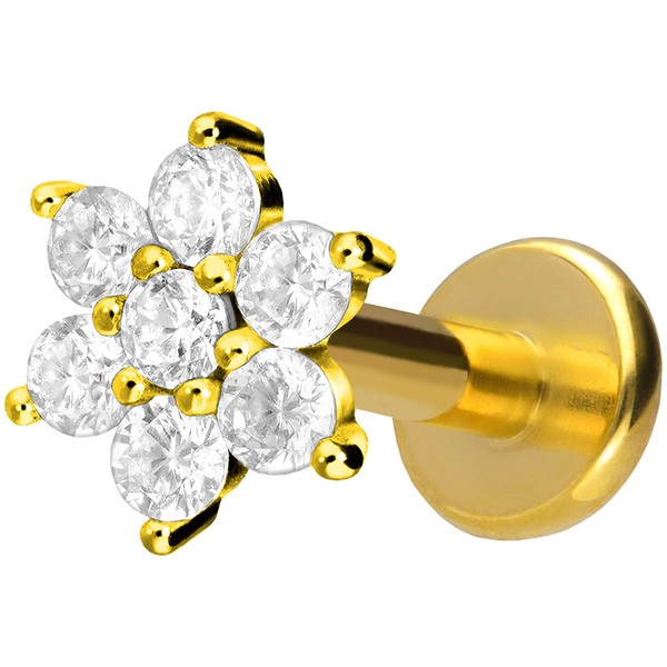 PIERCINGLINE Titanium Labret with Internal Thread Crystal Flower Piercing Lip...