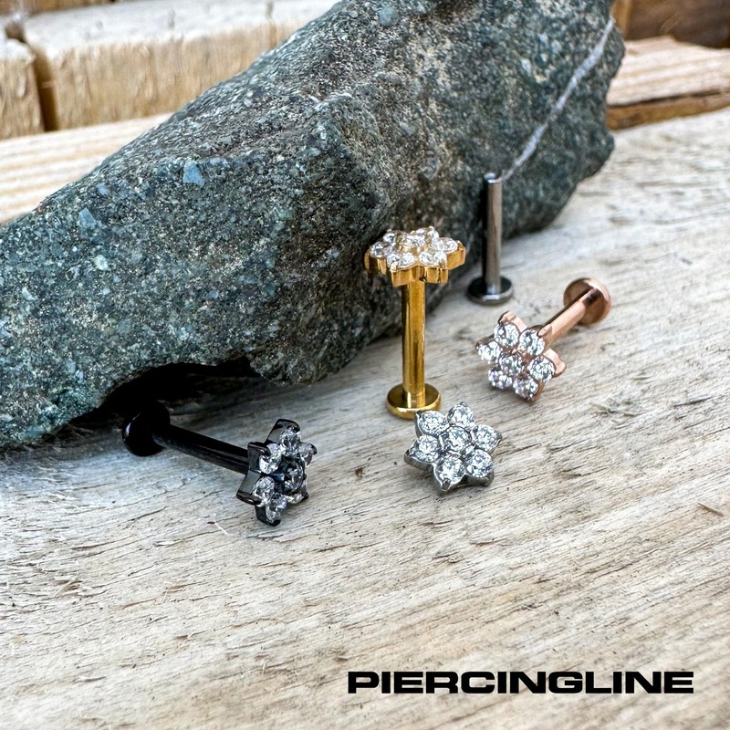 PIERCINGLINE Titanium Labret with Internal Thread Crystal Flower Piercing Lip Nose Ear Helix Choice of Colours and Sizes, Titanium