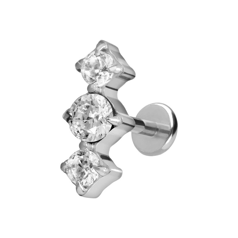 PIERCINGLINE Titanium Labret with Push Fit 3 Crystal Piercing Ear Nose Choice of Colours and Sizes, Titanium