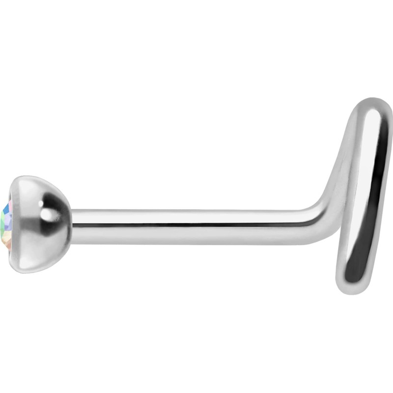 - Box contents: 1 nose piercing, titanium, silver, bar thickness: 1 mm, bar length: 6 mm, crystal colour: rainbow, crystal size: 2.5 mm