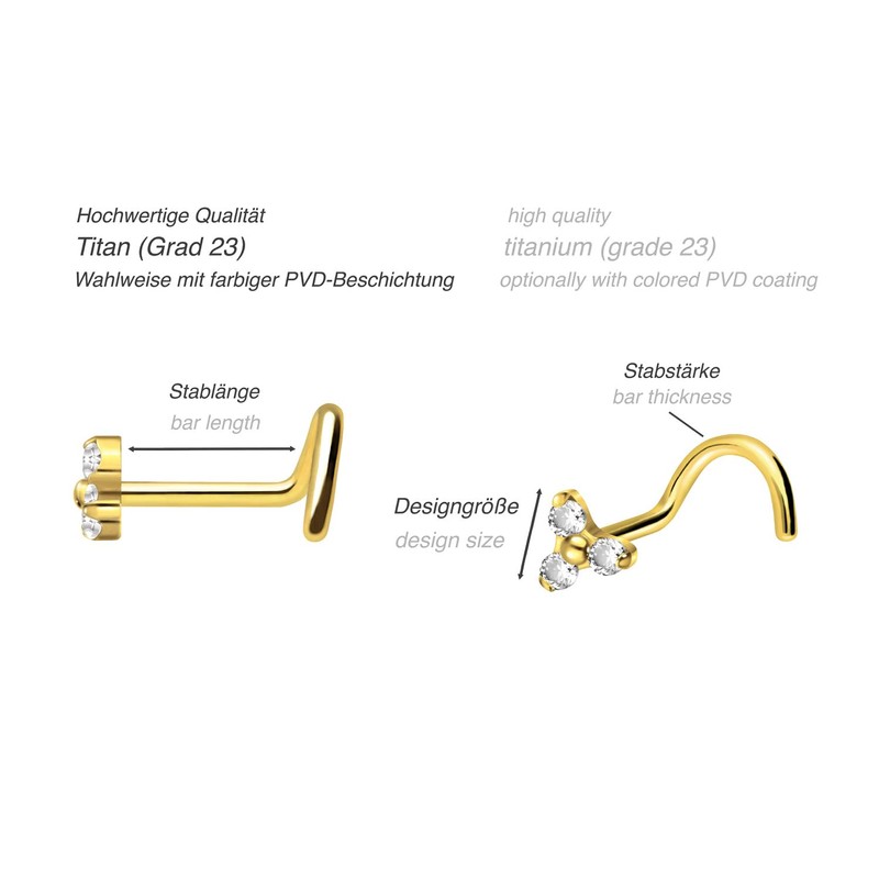 - Box contents: 1 nose piercing, titanium, silver, bar thickness: 1 mm, bar length: 6 mm, design size (crystal flower): 4 mm