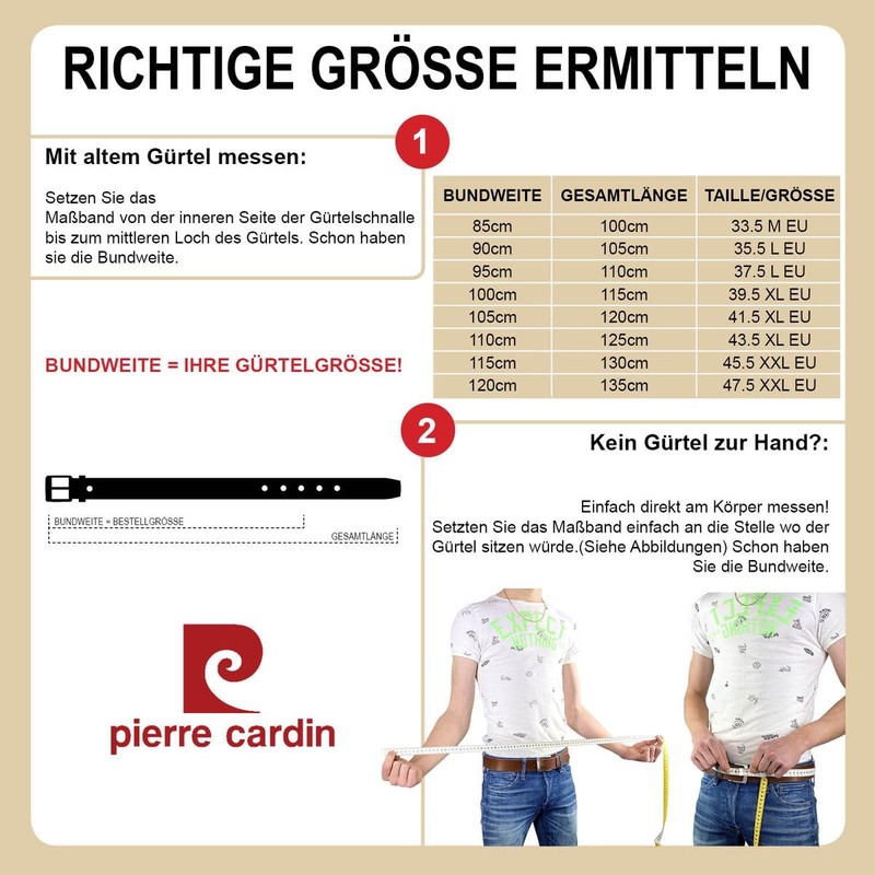 Pierre Cardin 70007 40 mm Wide Black or Brown Leather Belt - brown, size: 140