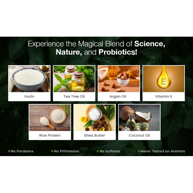 • NOURISHING INGREDIENTS: Enriched with nourishing ingredients such as Probiotics, Argan Oil, Tea Tree Oil & Vitamin E, which work together to soothe and revitalize skin.