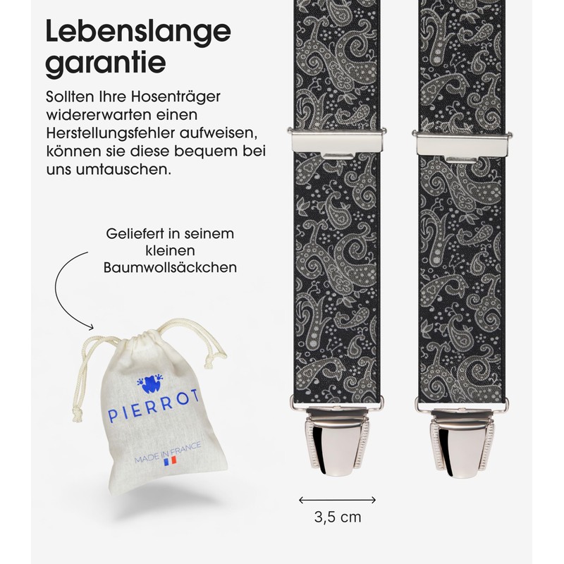 • Handmade: The Pierrot braces are handmade from high-quality materials in a small workshop in France. The braces are Oeko-Tex certified.