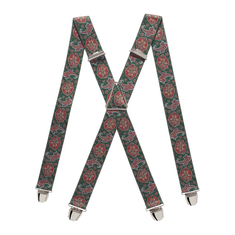Pierrot Braces for Men Wide Made in Germany / France - Ultra Strong Elastic Band & 4 Extra Strong X-Clips - Adjustable Length up to 130 cm - Lifetime Guarantee, Paisley Green, Unit size