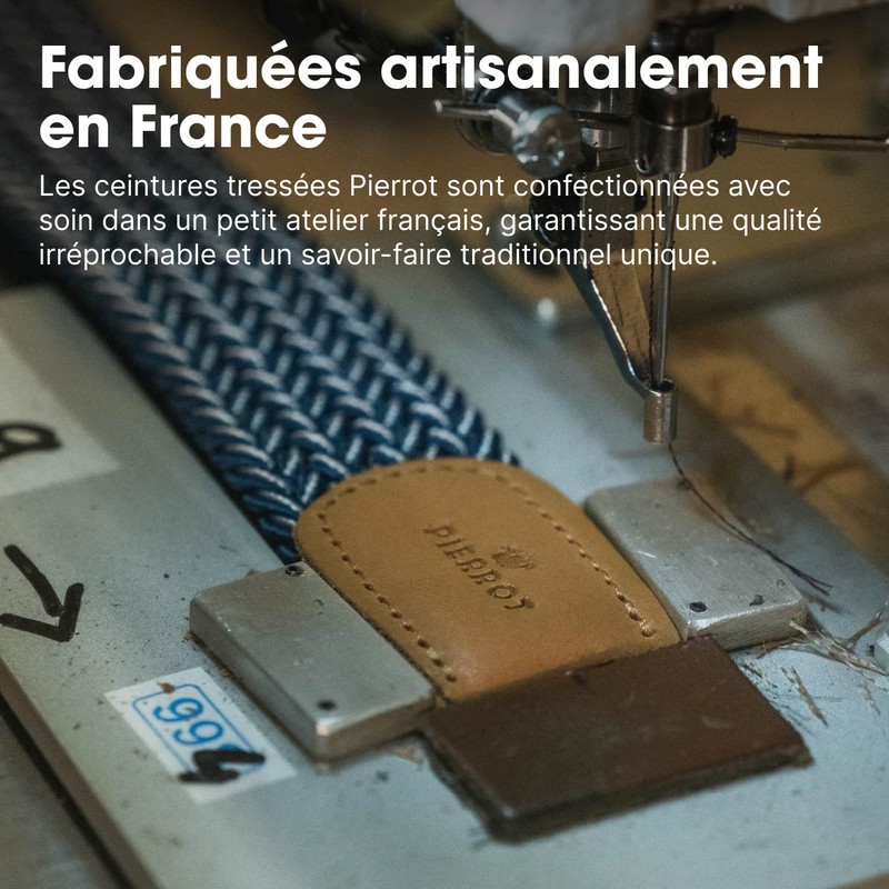 - Handmade – Each braided Pierrot belt is made with passion in a small, selected workshop in France. These belts combine elegance, quality and craftsmanship.