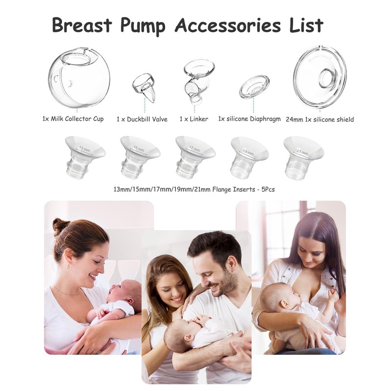 - El juego de inserciones de brida cumple con los cambios de tamaño de la boquilla dentro del rango de tamaño de las madres en diferentes etapas de la lactancia, las piezas de bomba de repuesto pueden satisfacer las necesidades de las madres.