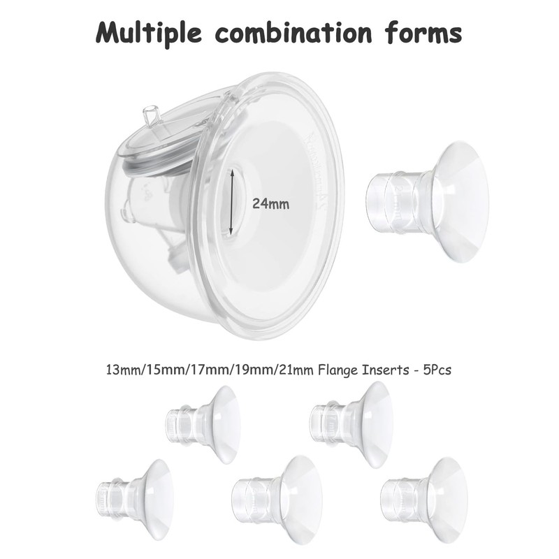 - Insertos de brida de 13/15/17/19/21 mm (paquete de 5) Compatible con bridas/escudos de 24 mm de la mayoría de bombas, inserto para accesorios de repuesto de extractor de leche, reduce el túnel de pezón de 24 mm hasta otros tamaños (no para escudos/bridas de 27 mm), reemplaza las piezas de la bomba.