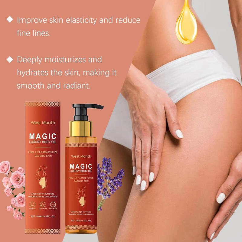 PIFLAT Magic Body Firming Oil – Full Body Use, Hydrating and Firming Skin Oil for Arms, Chest, and Thighs – with Vitamin E, Rosehip, and Almond Oils