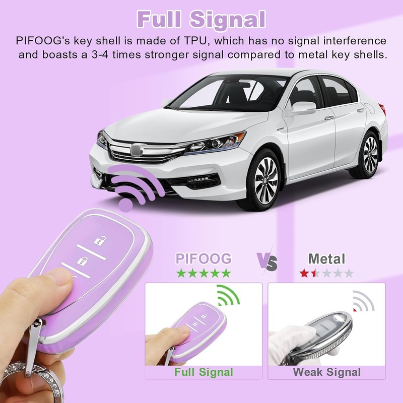 Fit for Chev: PIFOOG TPU purple car key cover snugly fit for Chevy Equinox 2018 - 2024, Malibu 2016 - 2023, Traverse 2017 - 2023, Blazer 2019 - 2023, Camaro 2016 - 2023, Spark 2017 - 2022, Trailblazer 2021 - 2024, Bolt 2020 - 2023, Bolt EUV 2022 - 2023, Bolt EV 2017 - 2023, Trax 2017 - 2025, Cruze LT 2017 - 2018, Volt 2016 - 2019. (Tips: Pls confirm your car key shape and button patterns same as pictured before purchase.)