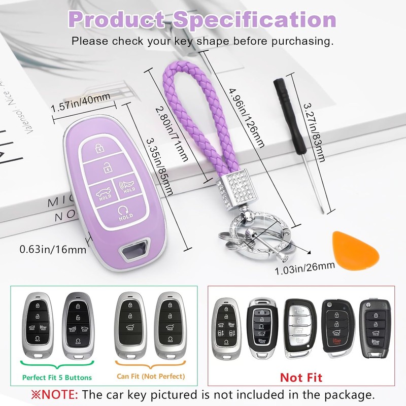 Great Choice: Package includes 1PC purple car key fob proetctor case fit for Hyundai, 1PC anti-lost and bling keychain fit for Hyundai with installation tools. It's a great and practical item to give to family, friends and colleagues etc
