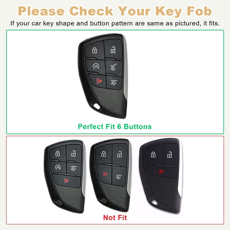 - Fit for GMC / Chev: PIFOOG 2 pack white gold car key fob protector case snugly fit for GMC Yukon 2021 - 2025, GMC Yukon Denali 2021 - 2024, GMC Yukon XL 2021 - 2024, GMC Yukon XL AT4 2021 - 2024, GMC Yukon XL 1500 2021 - 2024, Chev Tahoe 2021 - 2024, Suburban 2021 - 2024, Suburban 1500 2021 - 2024, Silverado 2024 2025, Not fit for 2021 - 2024 Tahoe LS,2024 GMC Yukon SLE. (Note: The car model is for reference only. Pls confirm your car key shape and button patterns same as pictured before purchase.)