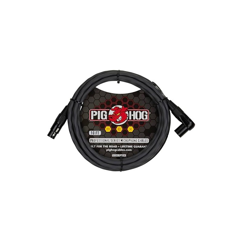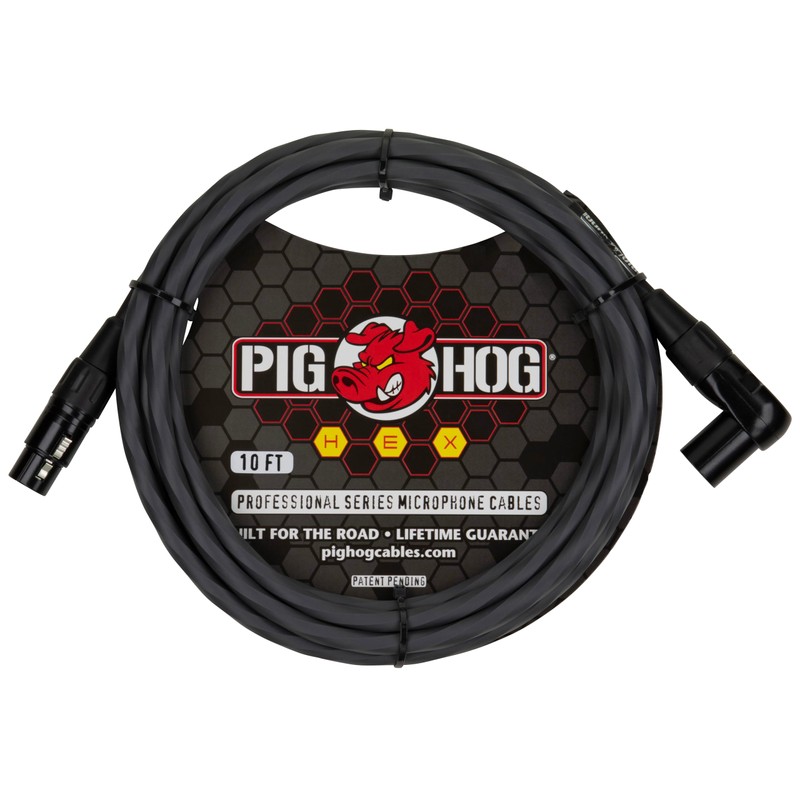 Pig Hog PHMH10GRR Hex Series, 10ft Right Angle Mic Cable, Grey