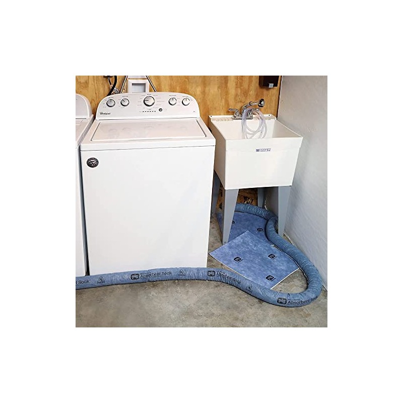 Flexible socks stop and absorb water from leaks, drips and condensation without causing mustiness. Socks are made of 100% polypropylene skin that lessens tearing and reduces dust and hold in liquid, even when fully saturated. Filler resists the growth of mustiness unlike cellulose absorbent socks. Great for use in the basement and garage where water seeps in. Place them in front of freezers, coolers and more to catch leaks and condensation where they show up. This lightweight, water absorbing sock is designed to quickly absorb and retain water. Not suitable for either the washing machine or dryer as the sock may become damaged in the process and filler loose in the machines. Only suitable for air drying. Socks should not be left in direct sunlight. Prolonged exposure will cause degradation.
