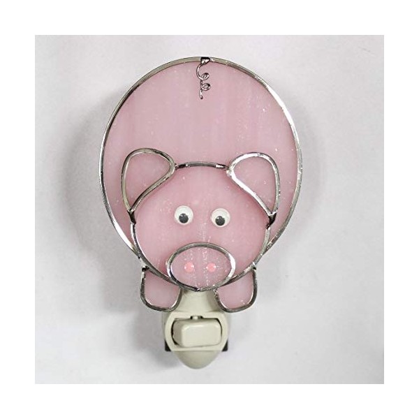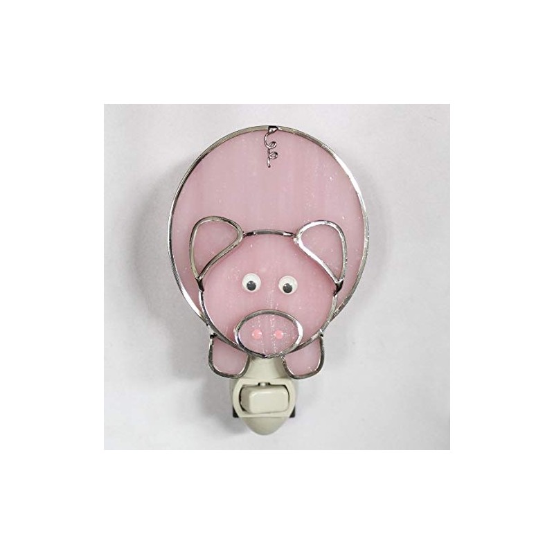 Pig Piggy Night Light in Stained Glass with Standard Night Light Base
