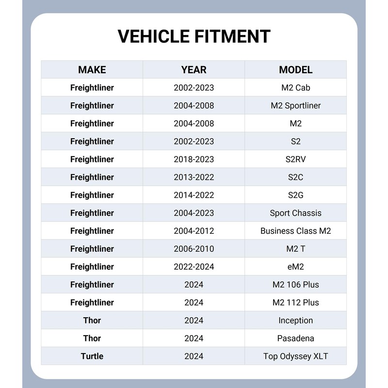 - Astraguard Windshield Sunshade Custom Fit for ⑩ 2006-2010 Freightliner M2 T, ⑪ 2022-2025 Freightliner eM2, ⑫ 2025 Freightliner M2 106 Plus, ⑬ 2025 Freightliner M2 112 Plus, ⑭ 2025 Thor Inception, ⑮ 2025 Thor Pasadena, ⑯ 2025 Turtle Top Odyssey XLT, (with sensor Detroit connect 5.0)