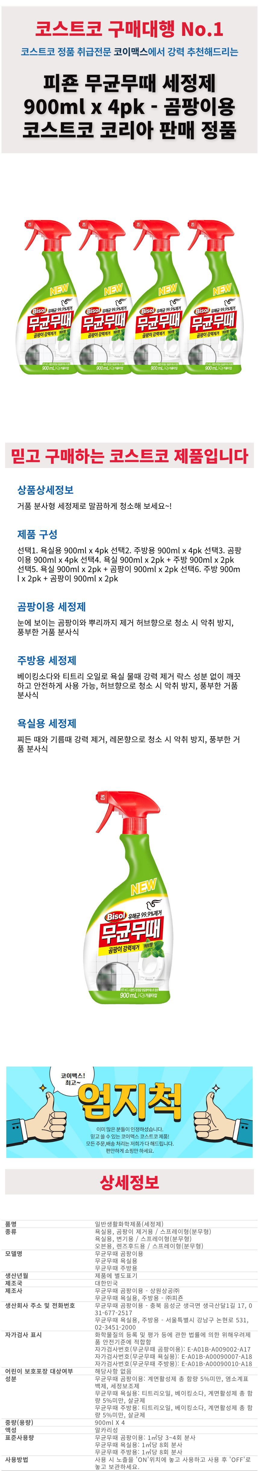 Pigeon Sterile Sterile Cleanser 900ml x 4pk Mold Drain / 피죤 무균무때 세정제 900ml x 4pk 곰팡이용 하수구