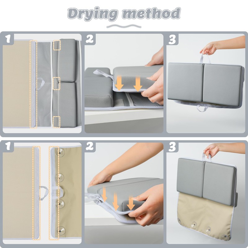 • High-Quality Fabrics: Our tub kneeling pad for bathing baby, are crafted from premium fabrics to ensure durability and comfort. Designed with Velcro for easy hanging and drying, bath time kneeling pad offer convenient storage options