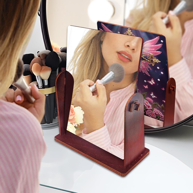 4. Finish the side of the diamond paitning and stick the mirror to the other side of the diamond painting board, finally, assemble the base and bottom plate. You will get a beautiful diamond painting rotate mirror