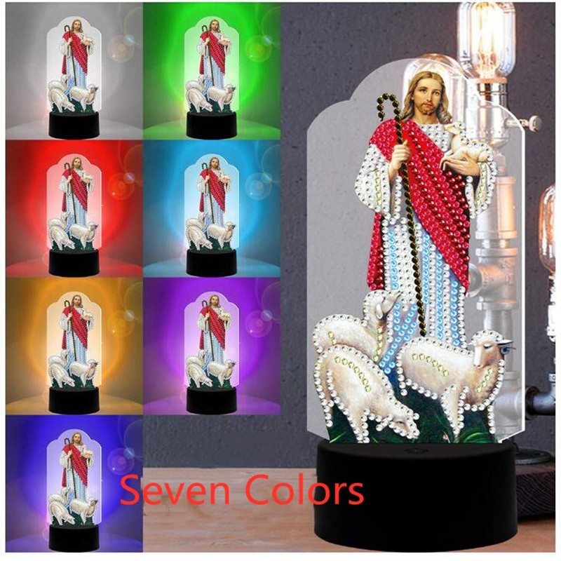 pigpigboss Jesus Diamond Painting Night Light 5D Diamond Painting Kit for Adults Religion Diamond Painting Night Light Kit LED Diamond Painting Night Lamp Home Decor Art Gift