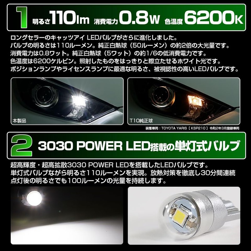 Pikakyu Nissan Xtra Trail [T32 Series Late] Licensed LED T10 Cat's Eye LED BULB 110 Lumens White 6200K 2 Pieces
