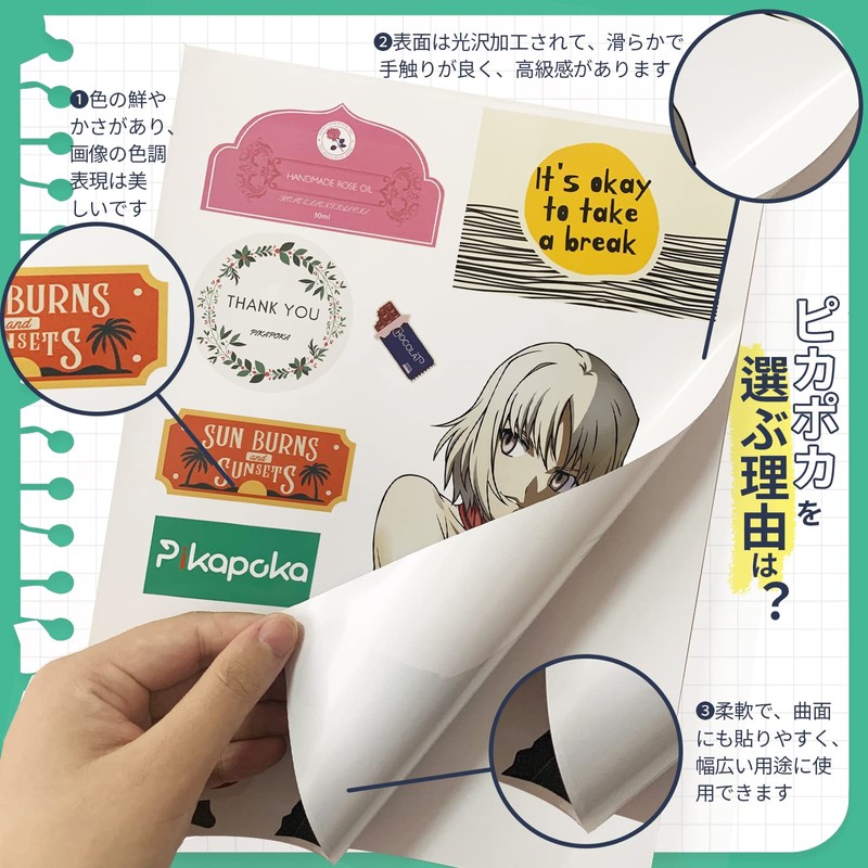 - Paper Type: Pikapoca Indoor Glossy Waterproof Label Sticker