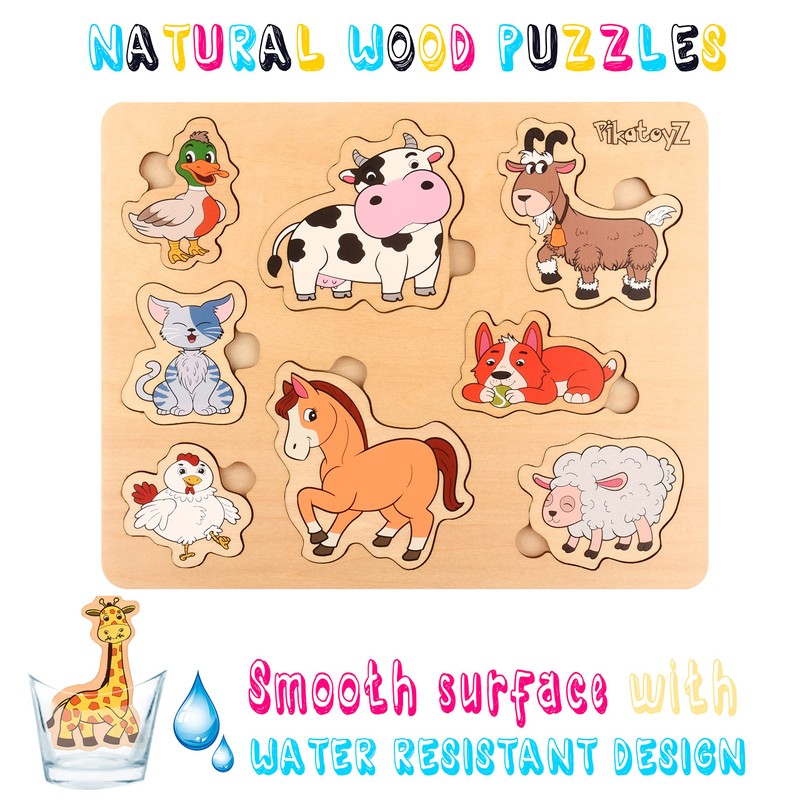- Whether as a Christmas, birthday or Easter gift, the wood puzzles for toddlers 1-3 of PikatoyZ are an ideal gift for children. It is an educational and fun game where babies, boys and girls can learn about the farm animals.