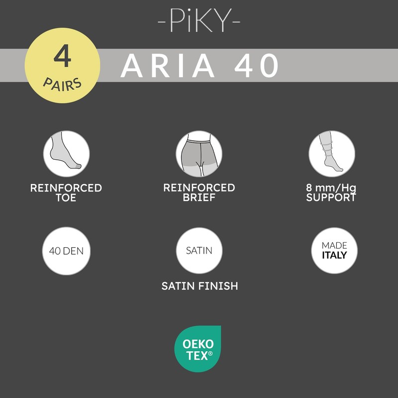 PIKY PACK 4 Pairs Support Tights, Sheer Travel Pantyhose, Medium Leg Support Tights 8 mm/Hg, 40 DEN, Made in Italy (UK, Alpha, XXL, Regular, Regular, Skin)