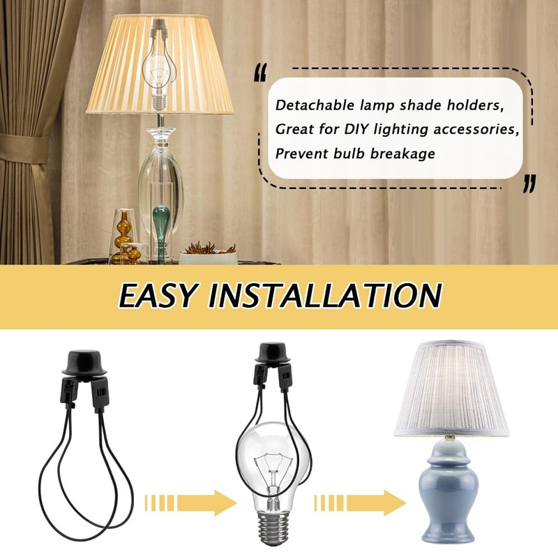 【EASY INSTALLATION】Detachable lamp shade holders, can secures lampshade to standard table lamps or floor lamps easily, protect the bulb from breakage. The detachable lamp harp group can easily fix the lampshade to a standard desk lamp or floor lamp.