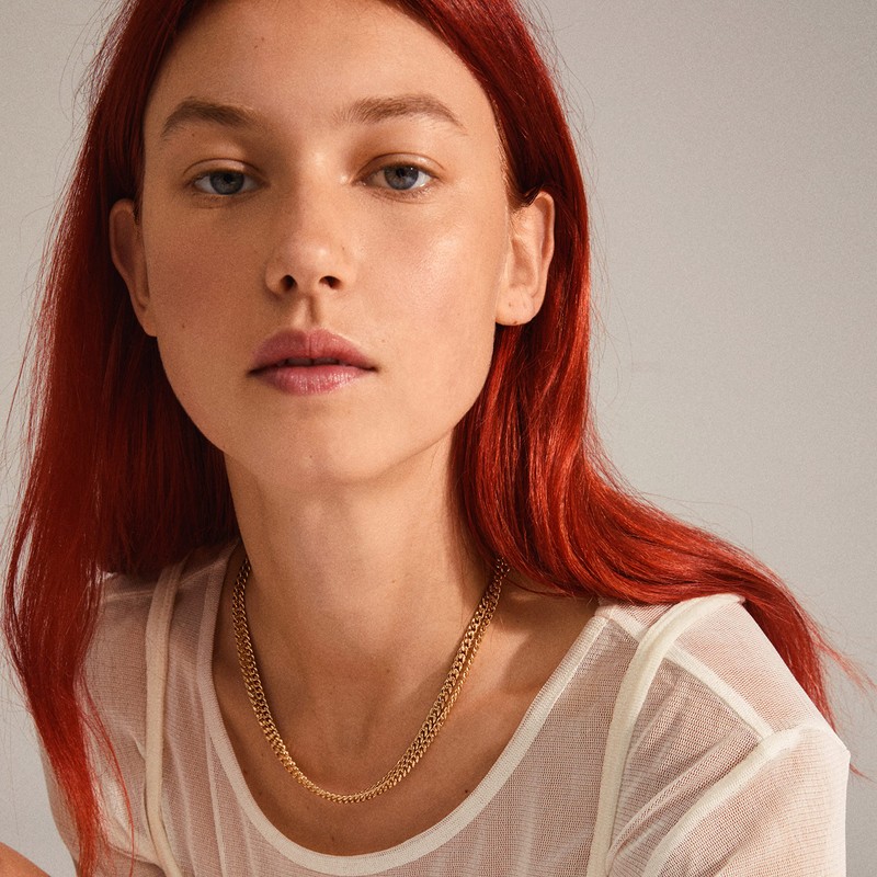 PILGRIM BLOSSOM Recycled Curb Necklace 2 in 1 Set, Gold