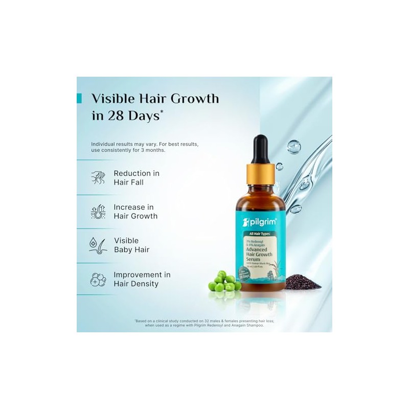 - ✅HAIR GROWTH SERUM : Pilgrim Redensyl Hair Growth Serum, the breakthrough ingredient for hair, acts upon the roots of the hair to rebalance the hair cycle without any side effects