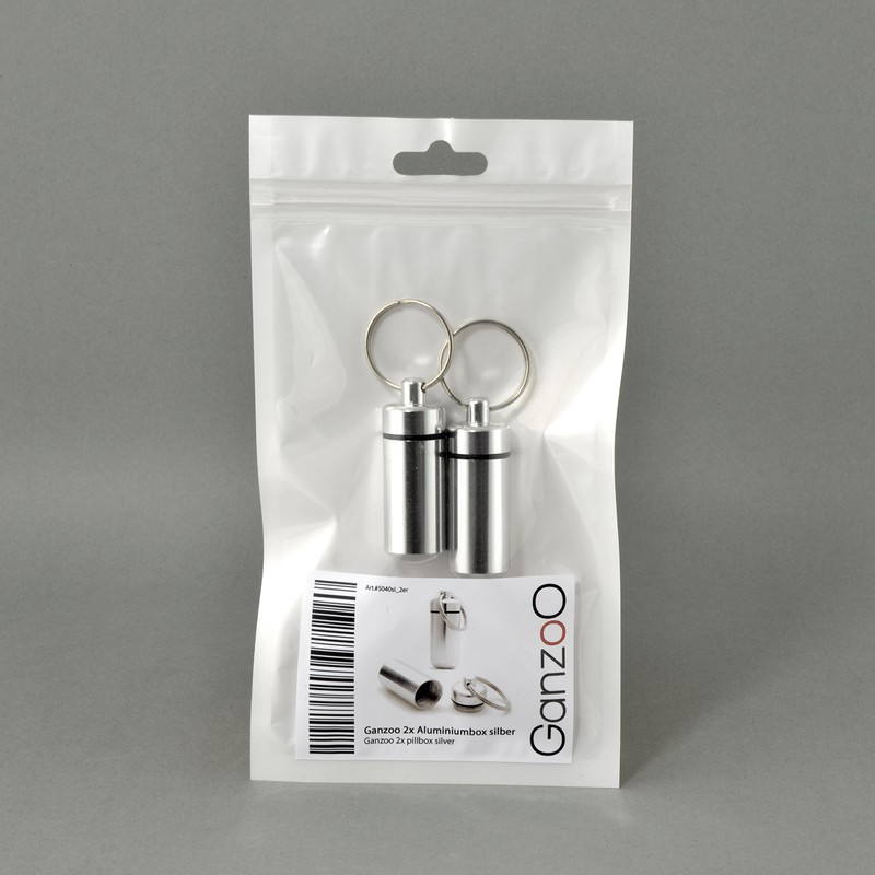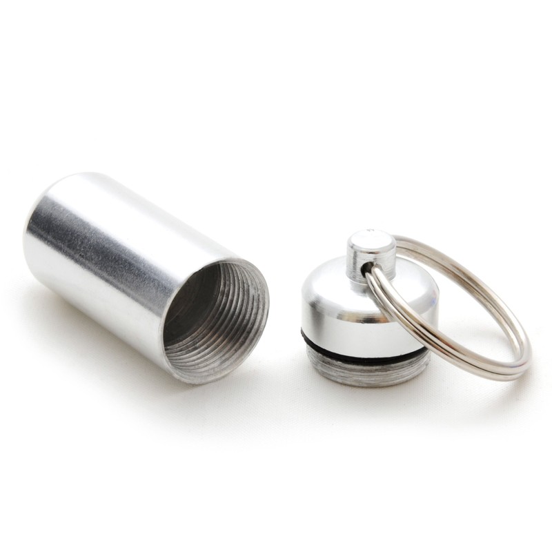 Pill Box, Set of 2 Aluminium Capsule, Key Pendant, Mini, Waterproof, Colour: Silver, Height: 45 mm