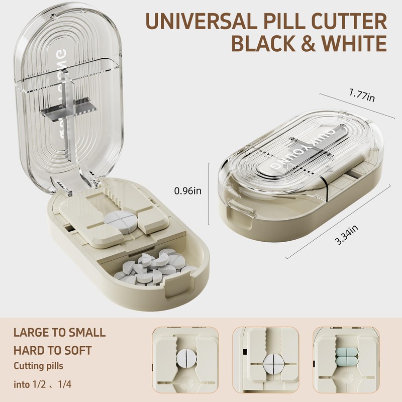 - PRECISION DESIGN: Professional-grade pill cutter featuring sharp stainless steel blade for clean, accurate splits of tablets and medications