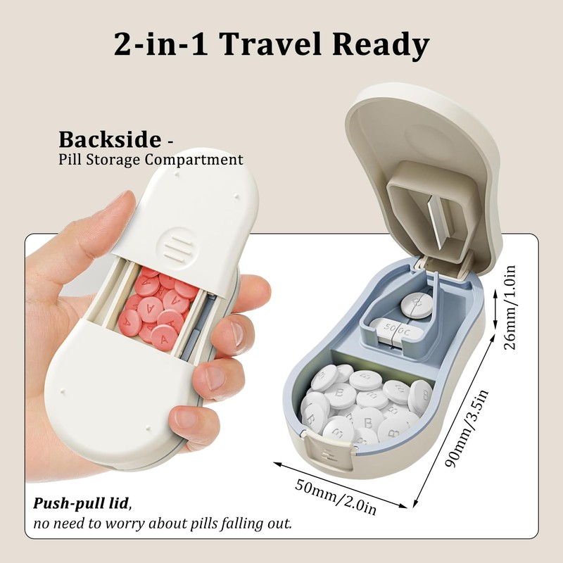 - 2-in-1 Travel Ready - Tough Build, Detachable & Washable, compact pill cutter with 2 built-in storage spaces great for taking on the go