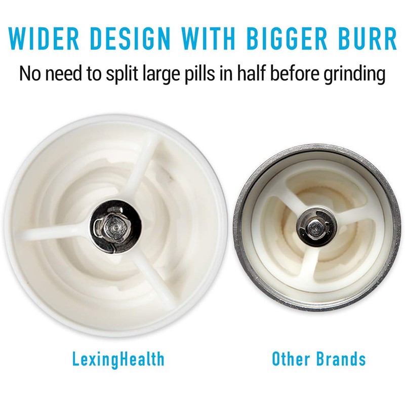 - GRIND BIG PILLS - Our medicine grinder is designed to be wider with larger ceramic burr to fit various sizes of pills, so you don’t need to split the big pills in half before grinding.