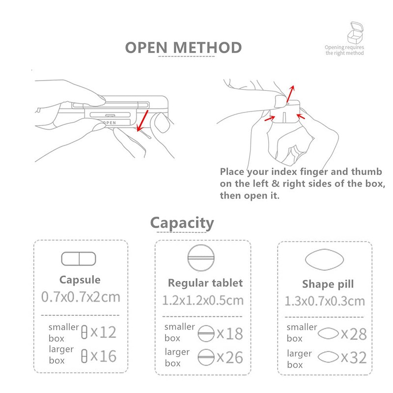 - Package included: 1* Transparent Pill case, 6* Smaller Grids, 4* Larger Grids. Dimension: .【Transparent pill case】3.9 * 3.5 * 1 inch.【Large compartment】1.57*1.18*0.78in 【Small compartment】1.57*1.18*0.78in
