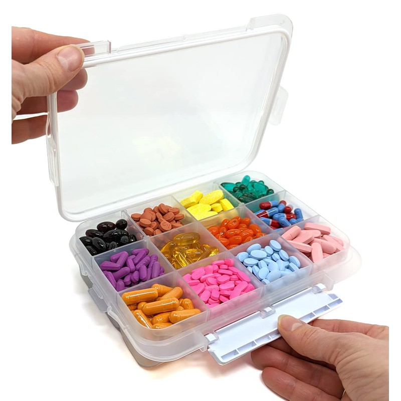 12 Compartment Large Pill Case with Airtight Seal - Silicone Gasket Waterproof Med Box with Medication Map (12 Compartment, 1 Pack)