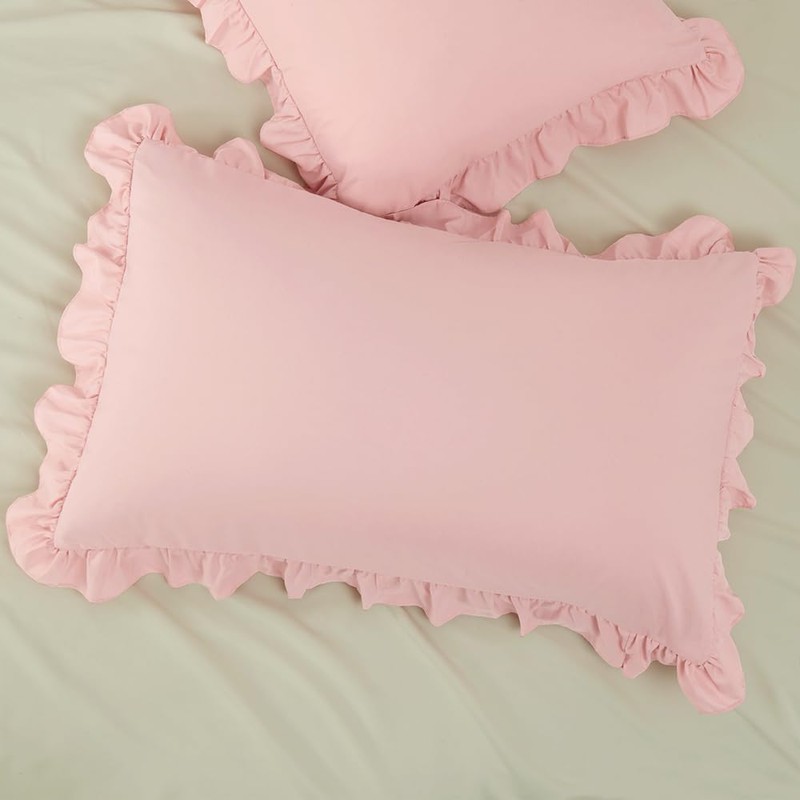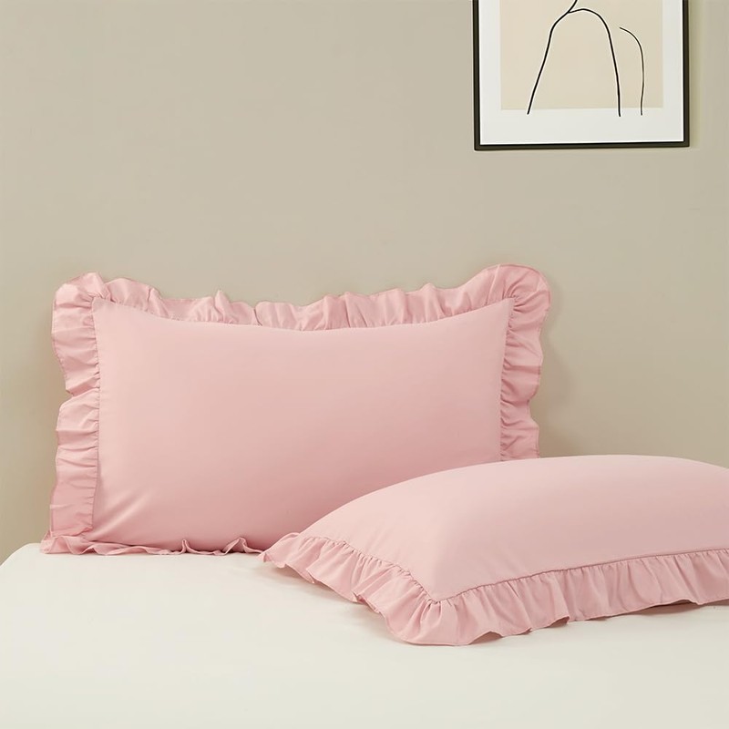 Pillow Cases Queen Size Set of 2, 20x30 Microfiber Pillow Covers Pink Ruffled Pillow Shams, Soft Breathable and Non Shrinking Envelope Closure Pillowcase Cute Pillow Cases